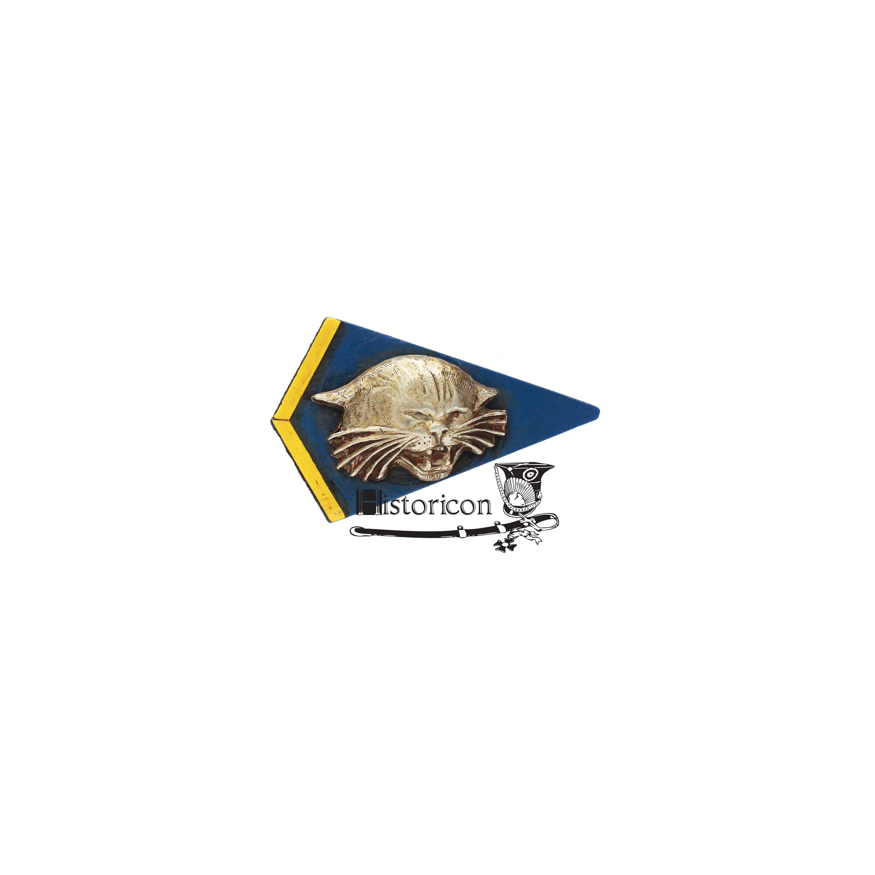 Wizerunek dzikiego kota wybity z głęboką kontrą ze srebrnej blachy.