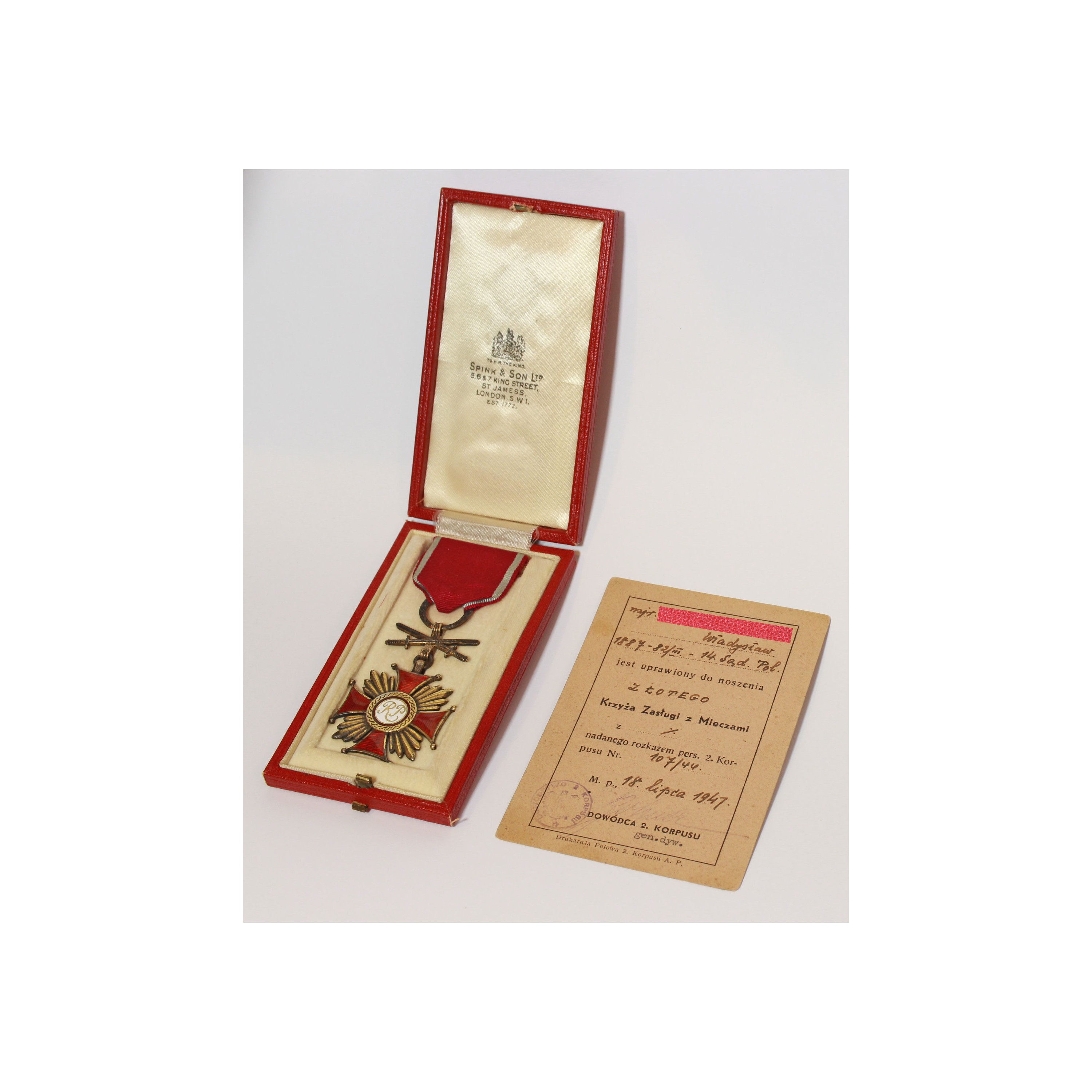 Złoty Krzyż Zasługi z Mieczami wykonany w znanej brytyjskiej firmie Spink & Son.
