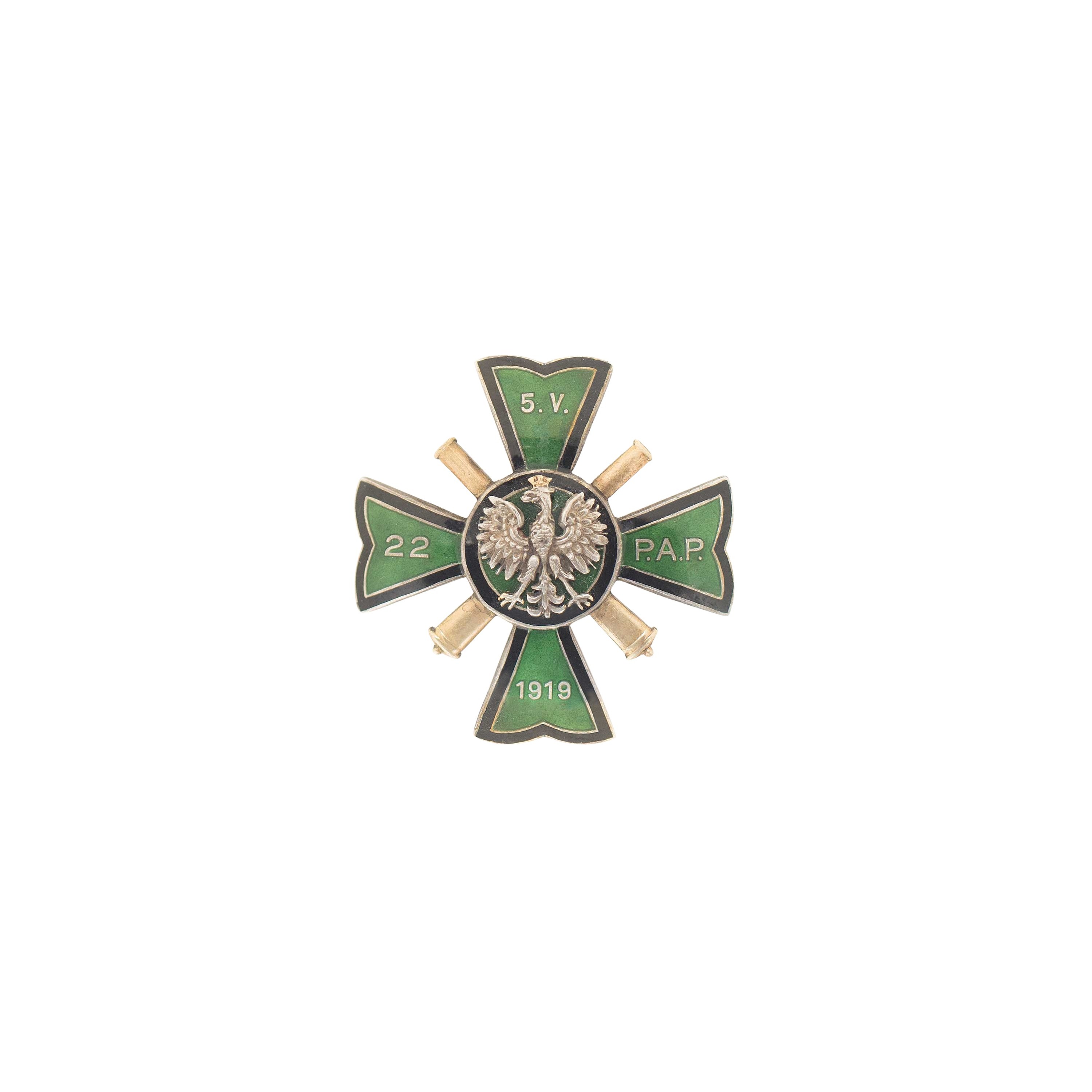 Odznaka oficerska 22 Pułku Artylerii Polowej, dwuczęściowa.