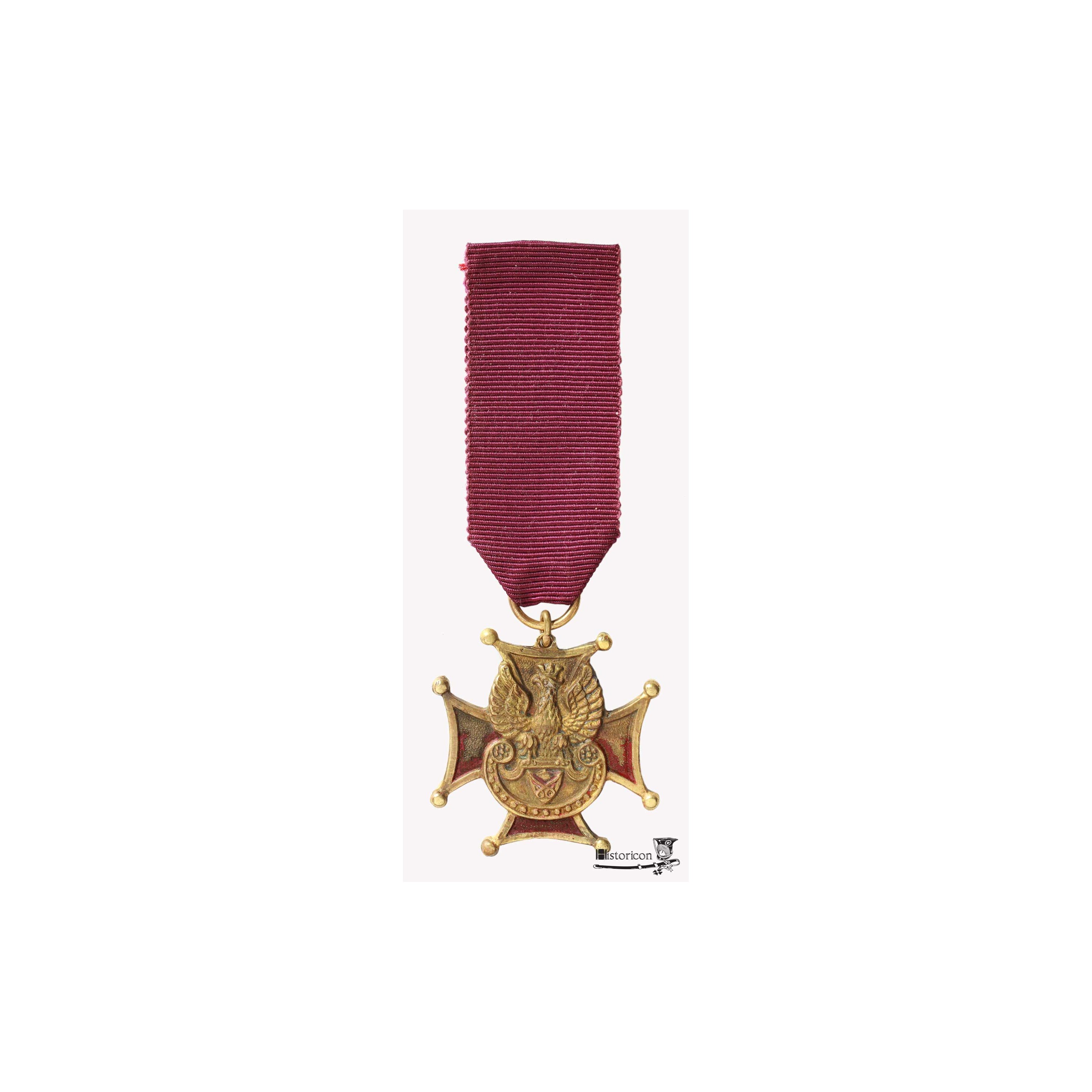 Resztki przedwojennego czerwonego lakieru na ramionach krzyża.