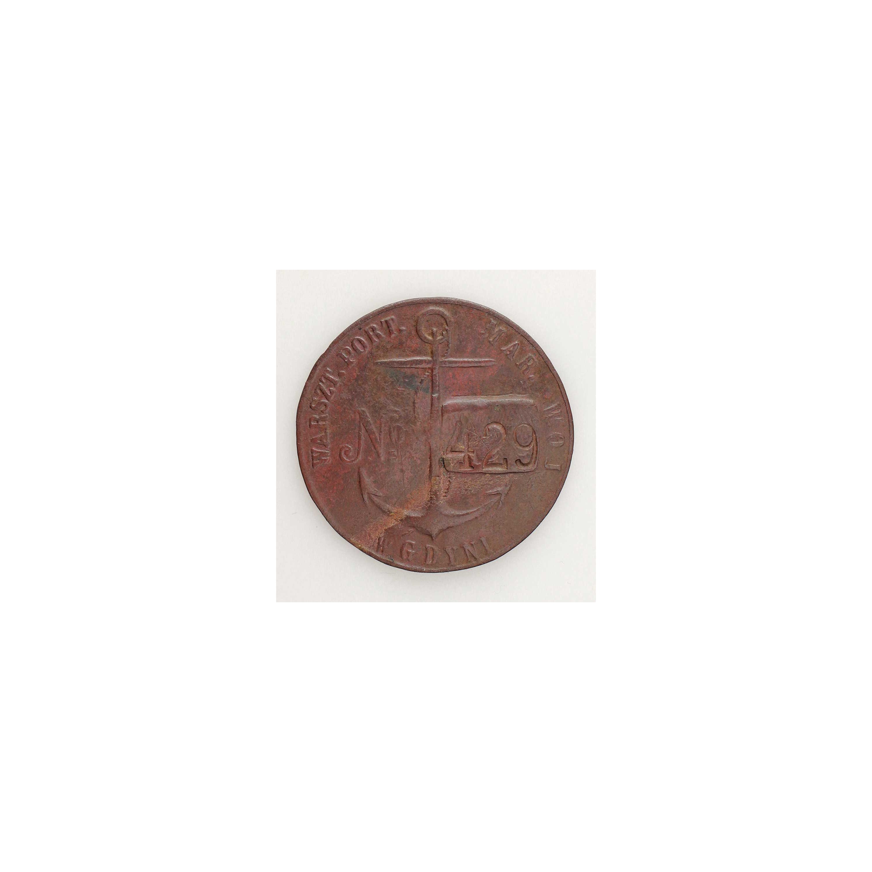 Przepustka w formie odznaki do Warsztatów Portowych Marynarki Wojennej w Gdyni.