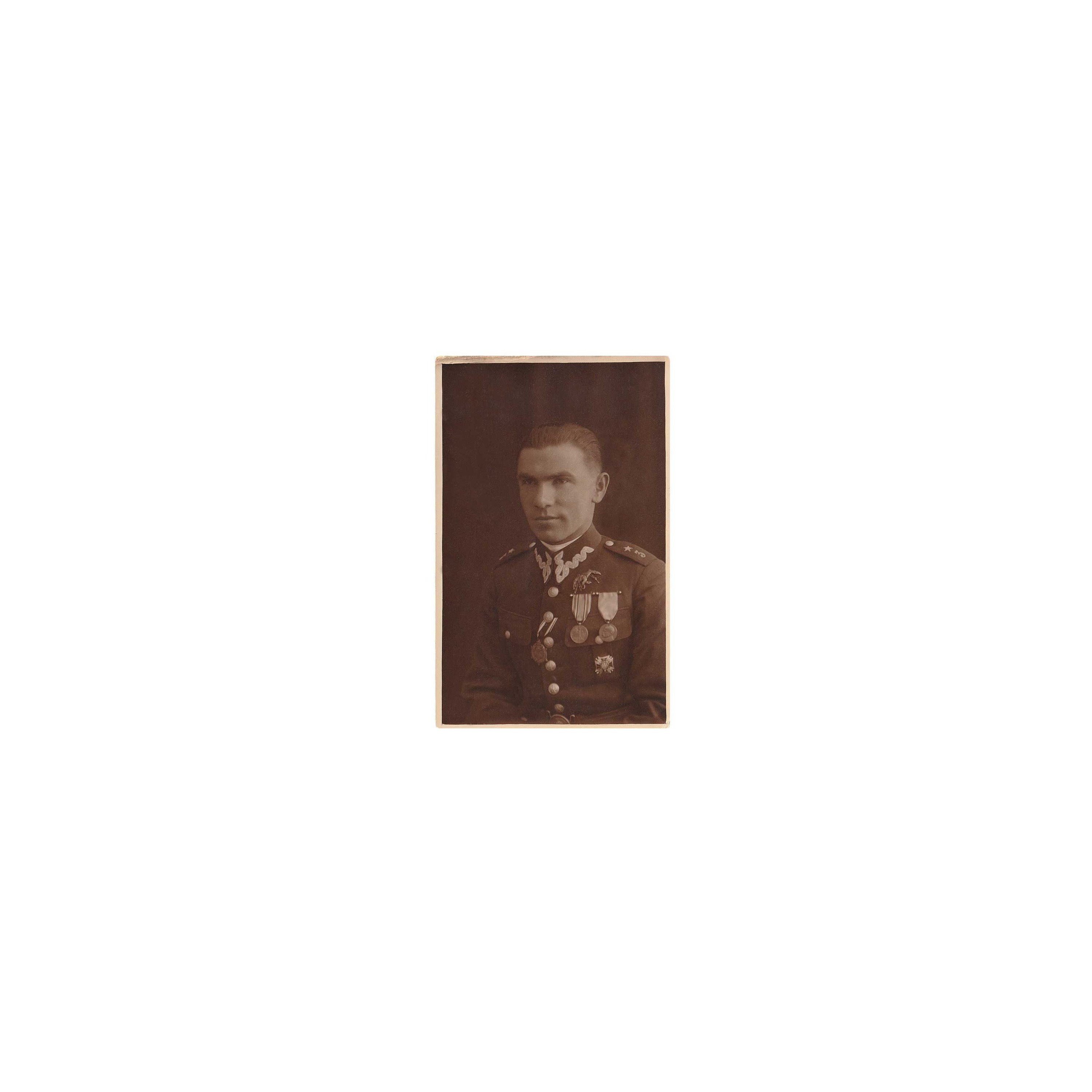 Zdjęcie obserwatora 3 Pułku Lotniczego z Gwiazdą Przemyśla oraz odznaką „Obrońcom Kresów Wschodnich”.