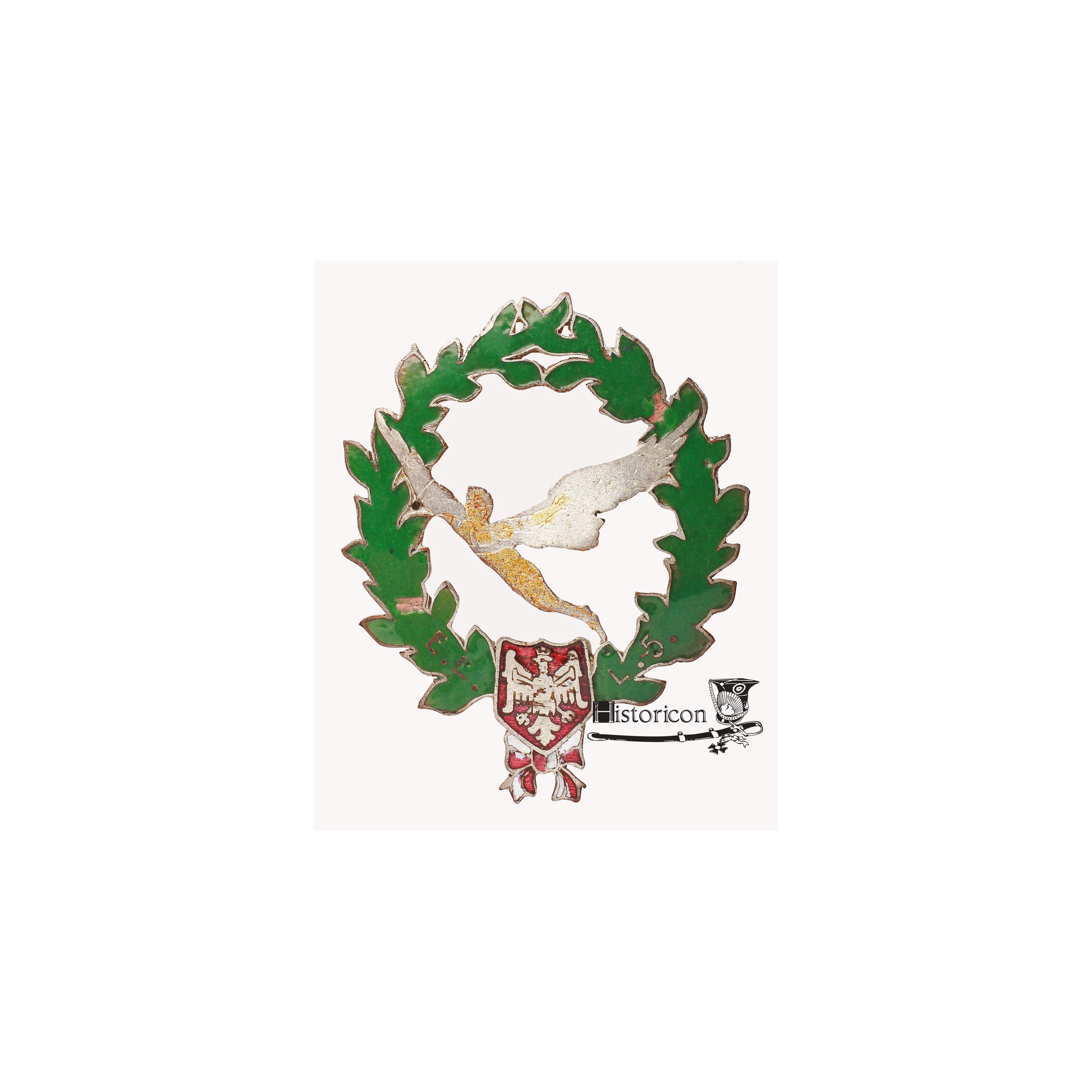 Dwa odpryski zielonej emalii na wieńcu.