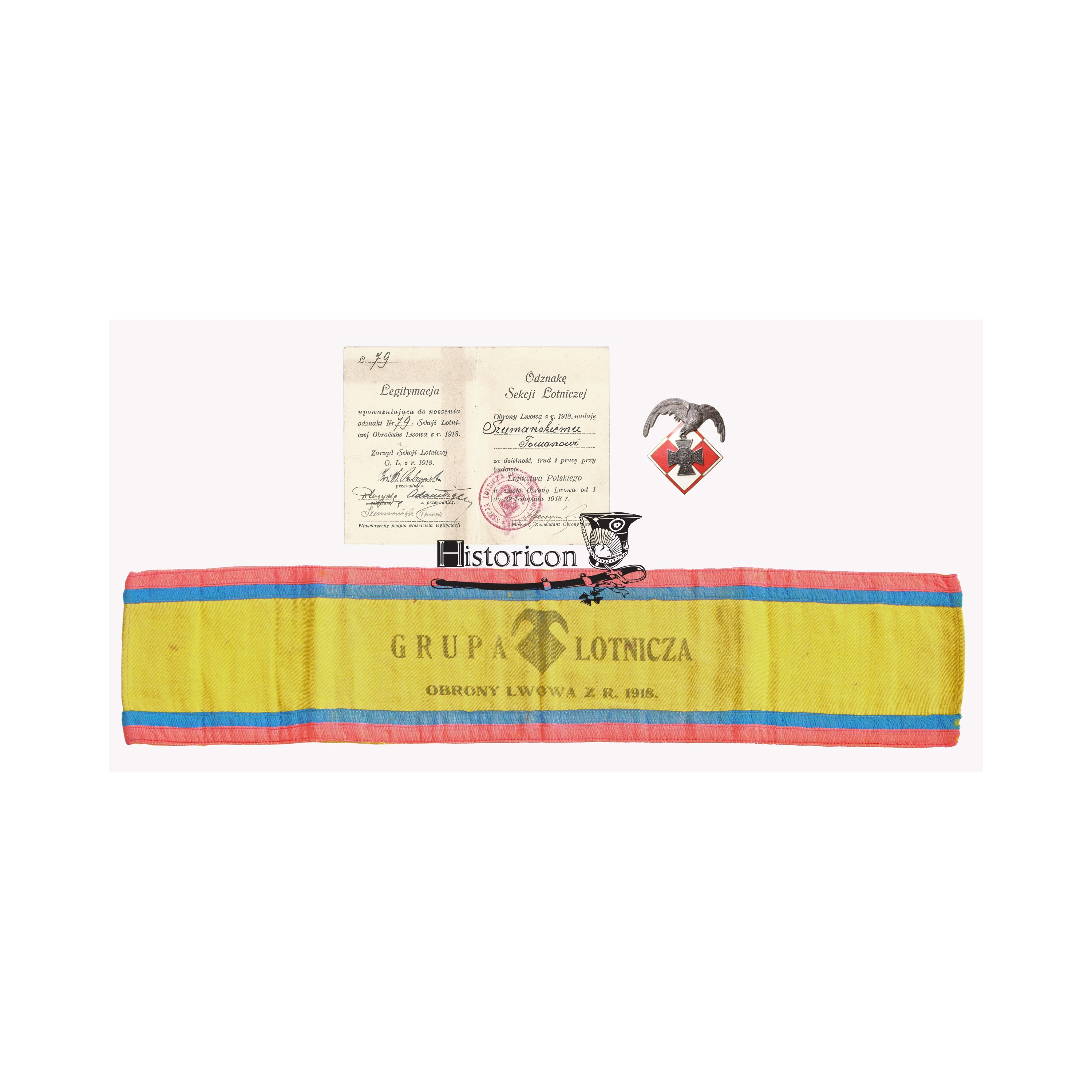 W komplecie doskonale zachowana opaska członka sekcji lotniczej oraz legitymacja.