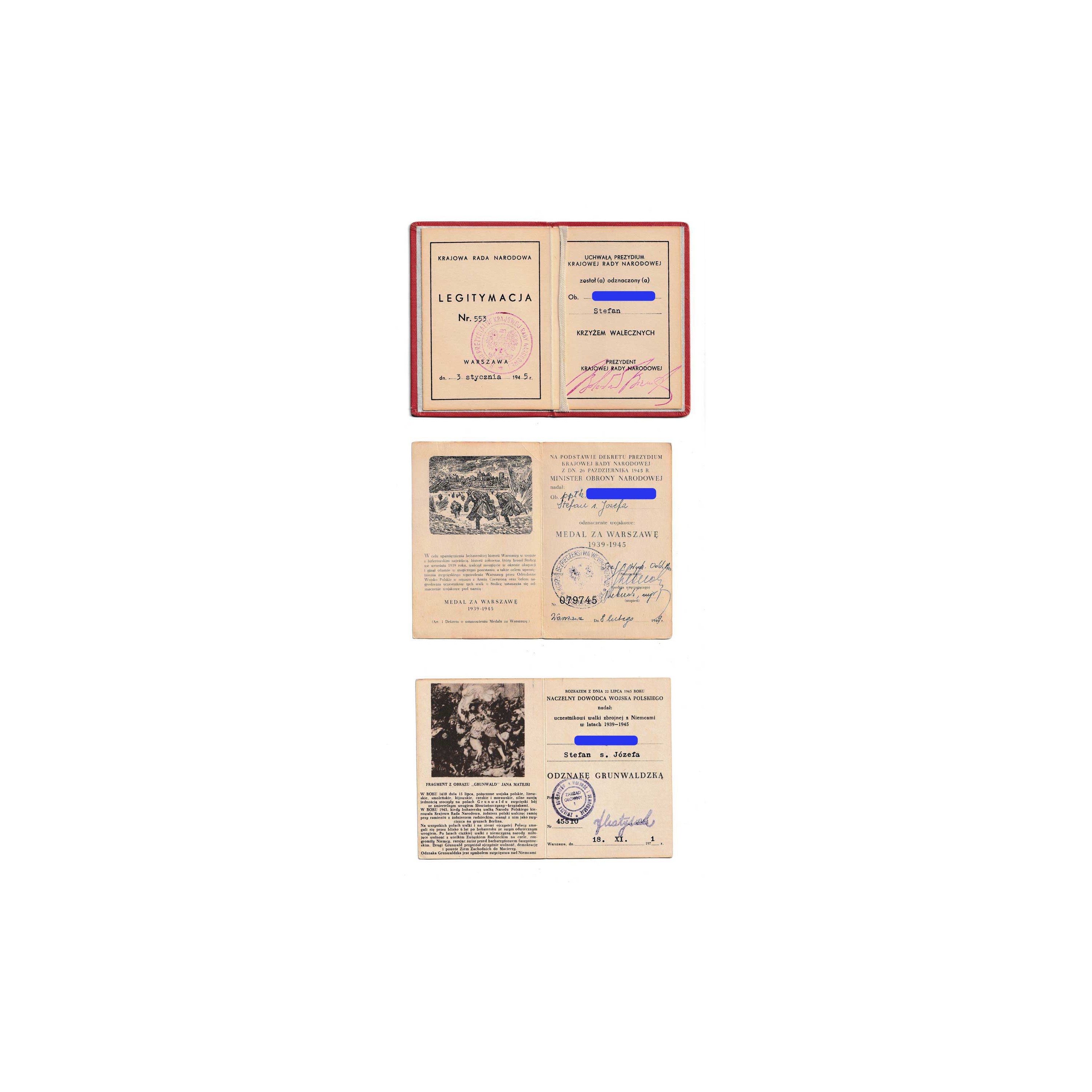 oraz legitymację do „Odznaki Grunwaldzkiej”.