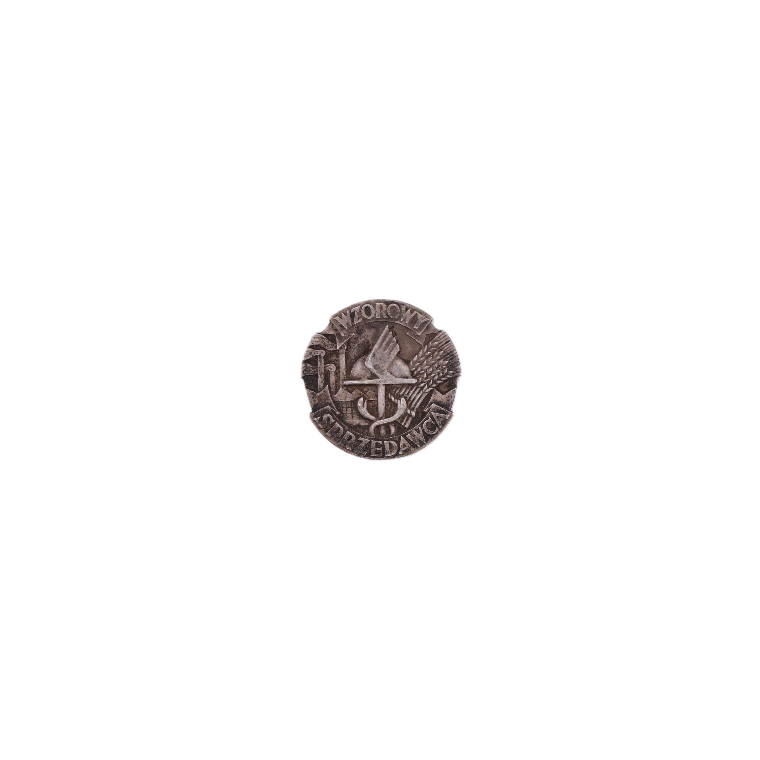 Odznaka Wzorowy Sprzedawca wybita w srebrze.