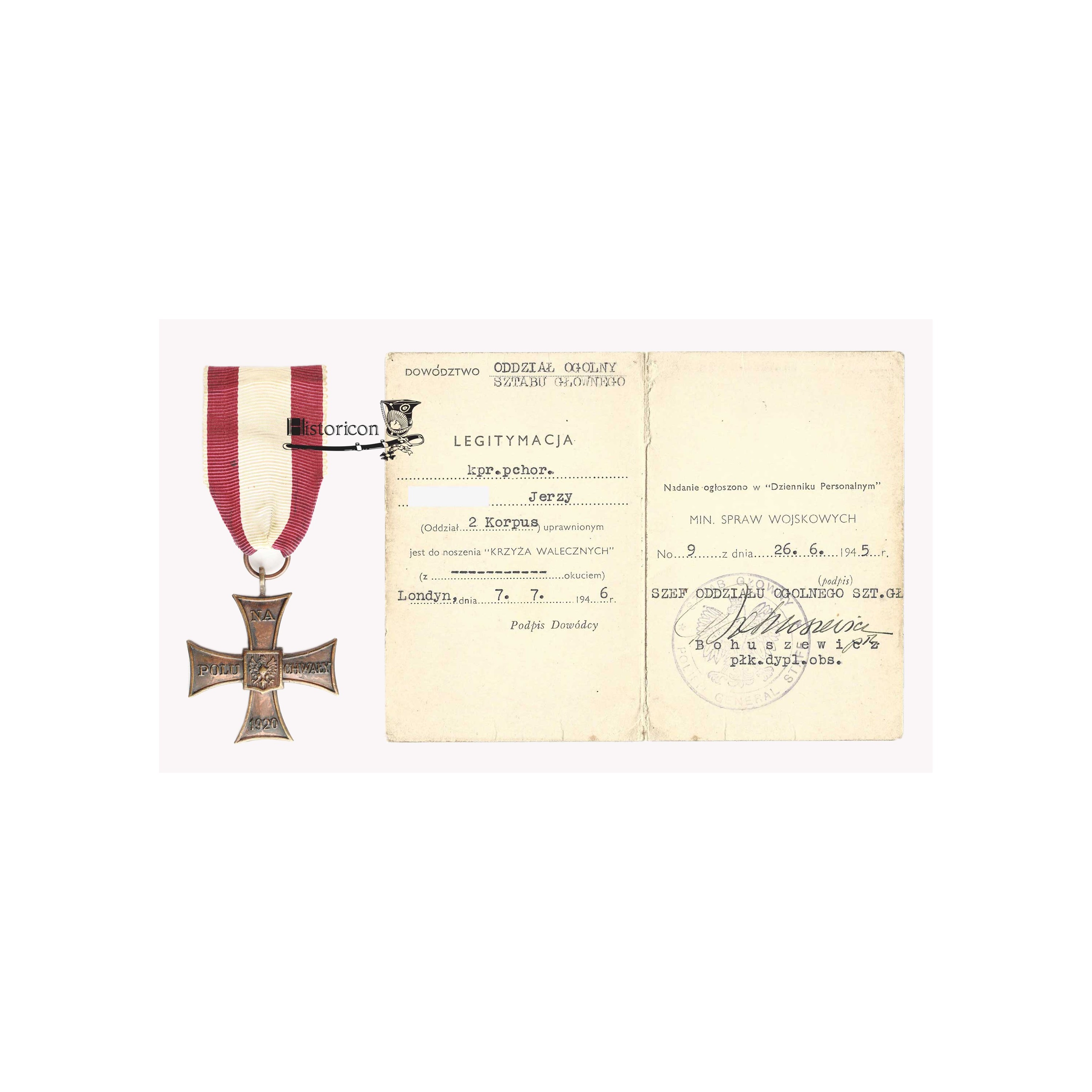 W komplecie legitymacja potwierdzająca nadanie odznaczenia kapralowi podchorążemu który służył w 2 Korpusie Polskim.