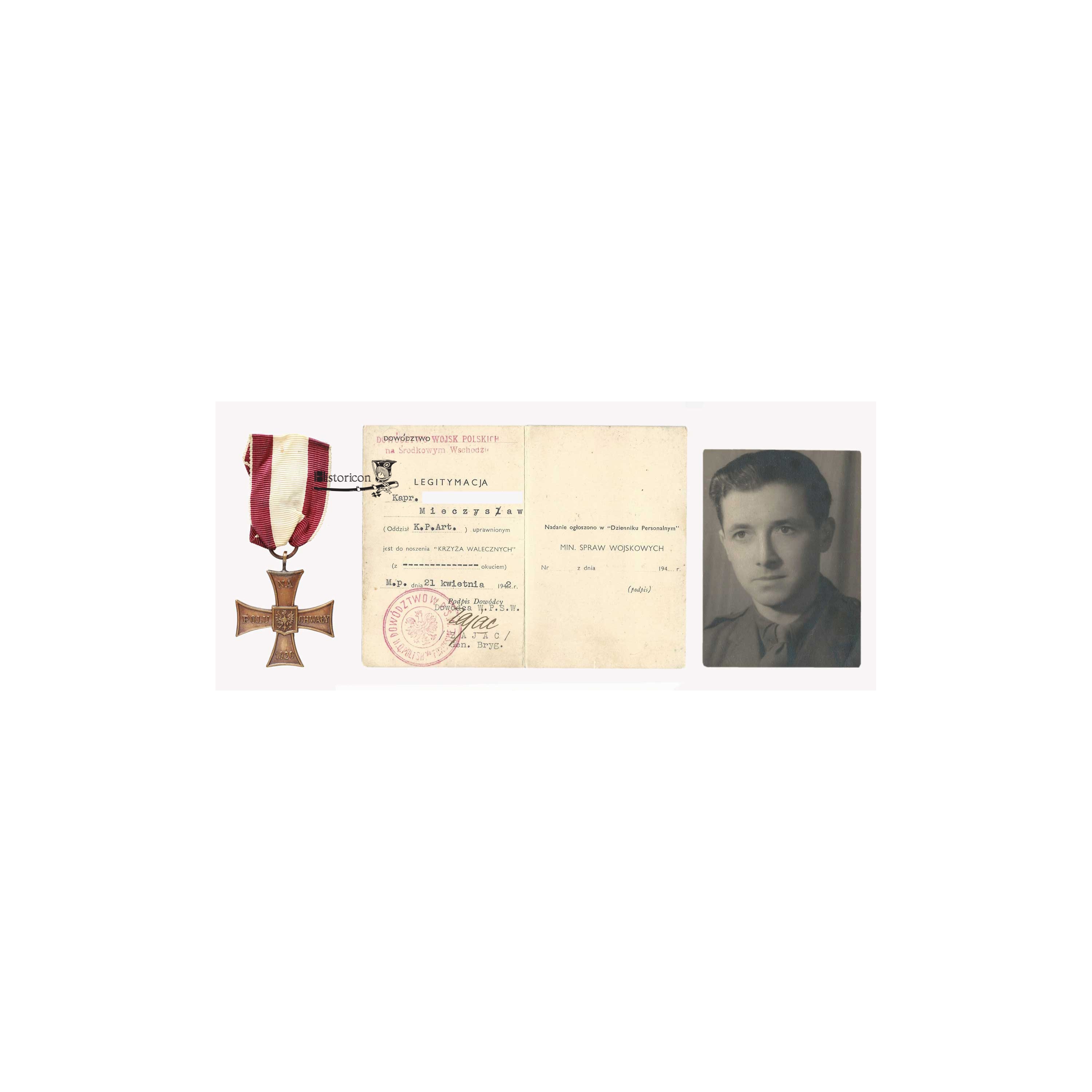 Krzyż Walecznych wykonany w firmie Samuela Kretchmera wraz z legitymacją wydaną 21 kwietnia 1942 roku